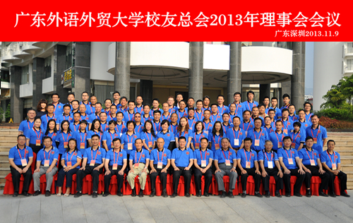 2013年11月9日上午,广东外语外贸大学校友总会2013年理事会会议在深圳市大梅沙海景酒店顺利召开。我校校长、校友总会会长仲伟合,副校长、校友总会常务副会长许国彬,副校长何传添,校友总会名誉会长、老领导庄明英、韩金波、相关部门负责人和来自世界各地的近百位校友等出席了会议。深圳市政府副秘书长黄国强校友代表深圳市政府出席了会议并致辞。