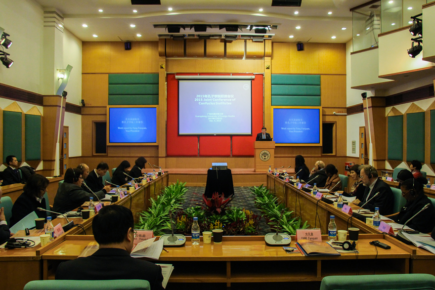 12月9日下午,孔子学院联席会议在我校行政楼国际会议厅举行。自2006年来,我校陆续和日本札幌大学、俄罗斯乌拉尔联邦大学、秘鲁圣玛利亚天主教大学、佛得角大学合作建设了四家孔子学院。当天四家孔院的代表齐聚广外共商孔院发展大计。