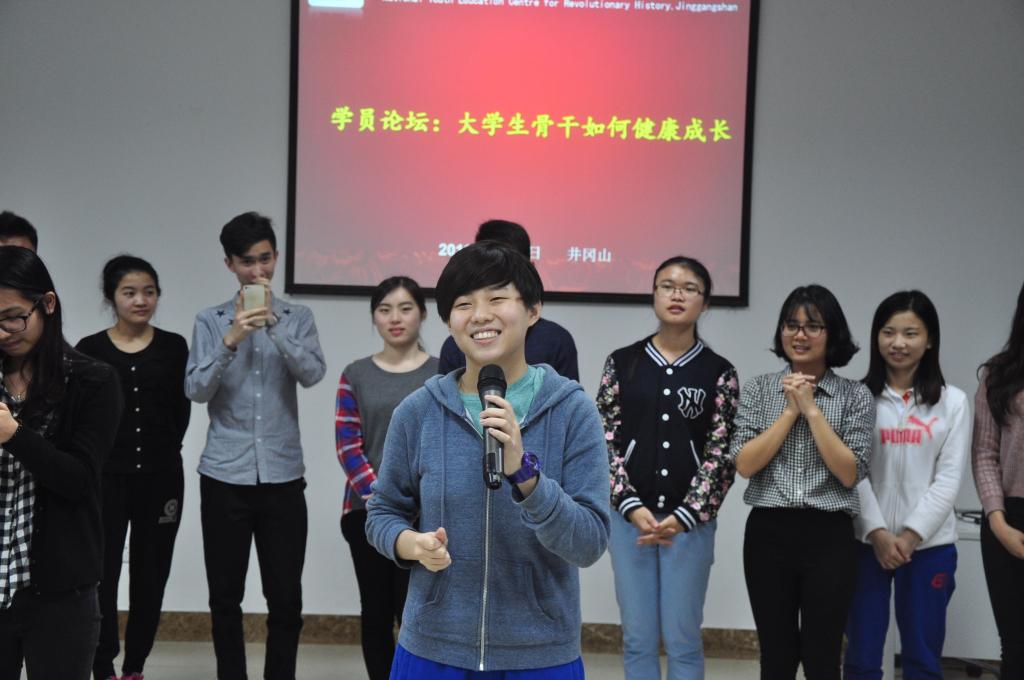 4月16日晚,青马班学员举行主题为“大学生骨干如何健康成长”的论坛活动,纷纷畅谈此次学习的感受,并就如何继承和弘扬井冈山精神畅谈自己体会。4月18日晚,我校学工干部在“学习井冈练兵,创造精彩人生”的分享会上,则用“三句半”的形式演绎了5天的培训生活,并用三个关键词结合自身工作分享体会。
