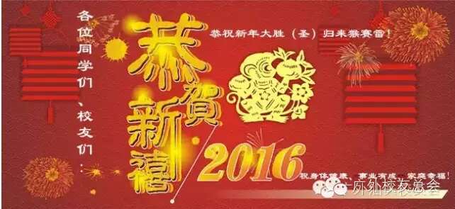 白驹过隙,时光荏苒,我们即将告别羊年,迎来猴年。在这辞旧迎新的时刻,广外汕头校友会向全体汕头校友及家人,向关心支持汕头校友会发展的各界朋友们,致以新春的祝福:恭祝新年大胜(圣)归来猴赛雷!