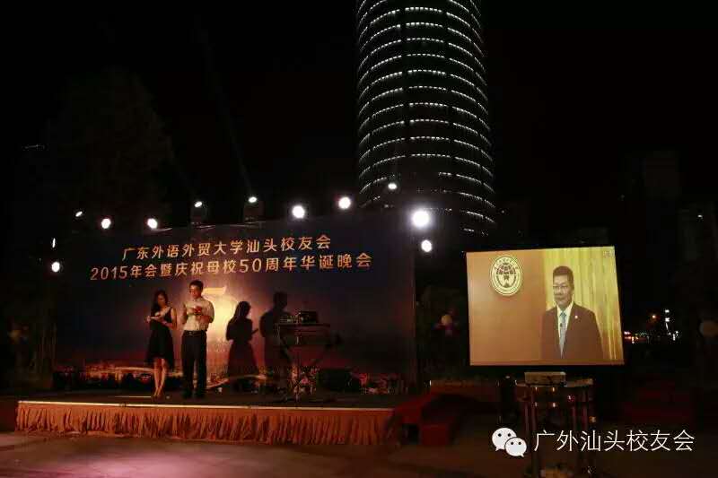 这一年,我们隆重庆祝了广外建校50周年,举行了盛大的广外汕头校友会2015年会暨庆祝母校50华诞晚会。校友总会副秘书长毕建永老师、广外汕头校友和中大、汕大汕头校友会理事代表等100余人出席晚会。仲伟合校长还通过视频点赞广外汕头校友会,称赞广外汕头校友会是广外最活跃的校友会之一,并代表学校师生向汕头校友送上最美好的祝福。陈少华秘书长代表理事会在大会上做了工作报告。此外,靓丽的汕头校友会会服也在当晚正式发布。现场还正式播放了汕我们专门制作的庆母校50周岁华诞的视频,通过镜头向母校表达了我们最深情的祝福。