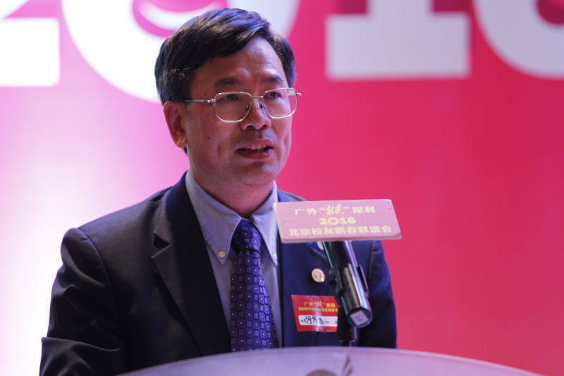 何传添在讲话时首先转达了校友总会会长仲伟合校长对校友们的亲切问候,并代表学校对广大校友对母校的关心与支持表示感谢,并向全球的广外校友们致以新年的祝福和问候。他表示,2015年是不平凡的一年,也是值的永远铭记的一年。经过全体广外人的共同努力,今天的广外,专业设置更加完善,学科发展更加平衡,科研业绩再获突破,国际化水平明显提高。尤其是在建校50周年之际,全球各地校友以不同的方式表达着对母校的深情与厚爱、关心与支持,各地校友会围绕活动主题,积极举办校友庆祝活动,拍摄制作祝福视频,发动校友参与活动演出,呼吁校友为母校献礼,组织校友集体返校,为活动的成功举办付出了无数的辛劳与汗水。同时,他充分肯定北京校友会的工作,并希望北京校友会在新任会长带领下,一定能再创新的辉煌。