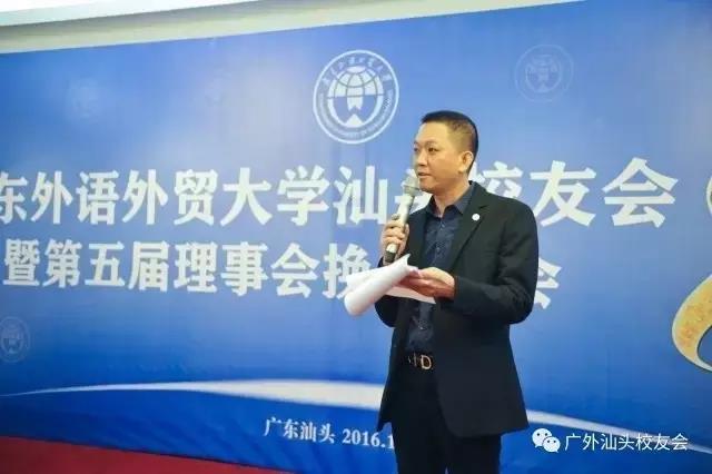 特邀嘉宾们广外商学院副会长洪培彬校友、广外物流校友会秘书长徐志乾校友、汕头外语翻译协会理事杨莉女士也上台讲话表示对当选理事会成员们的祝贺和汕头校友会的美好祝福。