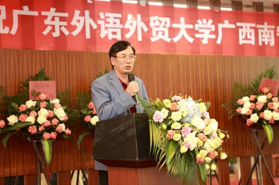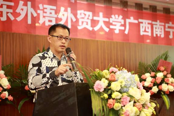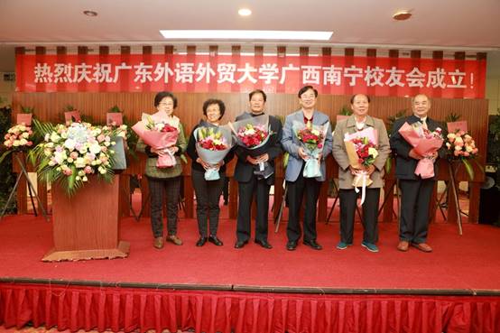 何传添首先代表学校对广西南宁校友会的成立表示祝贺,感谢筹委会全体成员的辛勤劳动,感谢五位65级学长、各地校友会代表和南宁的校友们积极参加活动支持校友工作。何传添还向校友们简要介绍了学校的发展情况,他希望校友们不忘初心,情系母校,携手共同创造广外新的辉煌。