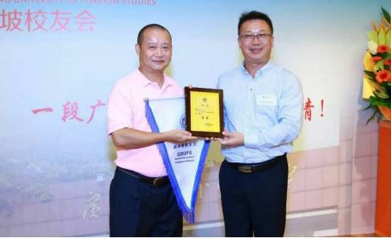 校总会秘书长谢伟光为黄伟源会长授旗并颁发聘书。他代表学校向新加坡校友会的成立表示祝贺,并表达了对新加坡校友会未来发展的美好祝愿。他表示,广外的发展离不开广大师生和校友的共同努力,在未来,希望母校和各校友会及校友们继续精诚合作,共谋发展。恰逢当天为重阳节,谢伟光在致辞最后表达了对各位校友的长辈们的祝福。