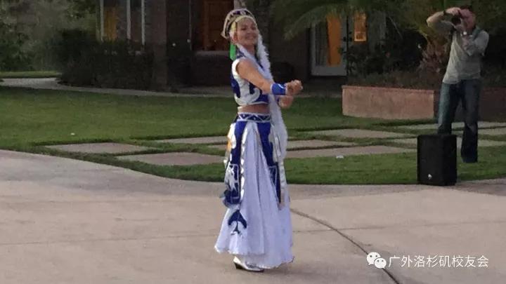 最后南加校友张翠芬的蒙古舞蹈在夕阳的余晖中翩翩起舞,优美动人的舞姿带着辽阔草原的气息与落日的依依不舍结束了室外的表演。