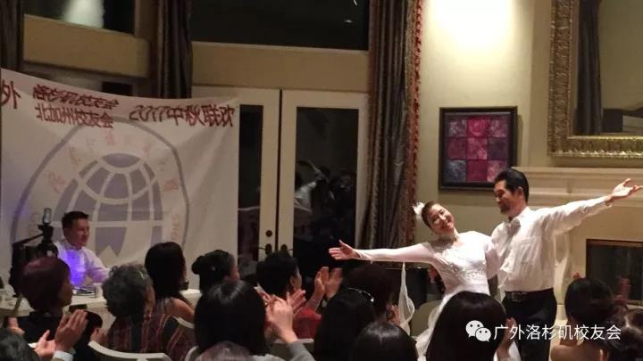 北加专为此次聚会自创的巜南北友谊之歌》小组七重唱,句句情深意厚,感人至深。南加歌星冯特佳一曲动人的Moon River在梁卓的伴舞下如梦如幻,是视觉与听觉的双重享受。北加李洁瑜、张梦秋双博士的双人舞《珊瑚颂》让人惊叹这对才艺双全的女校友。