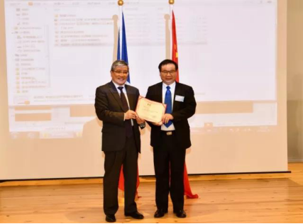 关键公使为广外法国校友会颁发荣誉证书