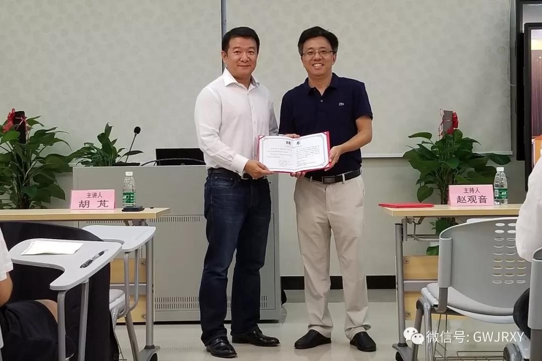 易行健对胡芃校友本次做客金融学院金融精英论坛表示热烈欢迎和诚挚感谢,并为其颁发金融学院客座教授、金融硕士校外导师聘书。